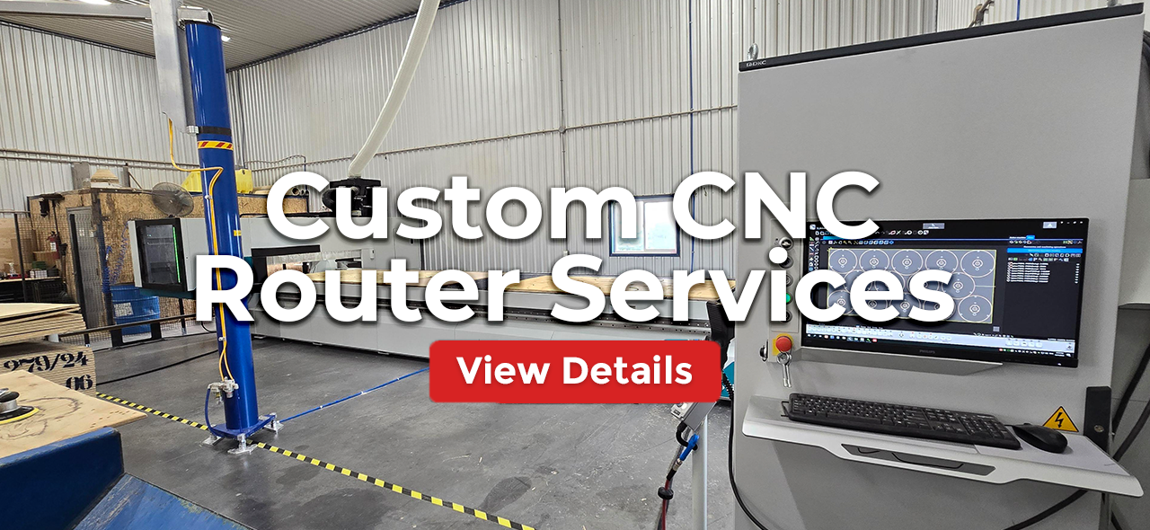 With our custom made high speed 5ft by 21ft CNC’s we are competitive and do high production processing of all materials from plywood to plastic, from wire spool flanges, chair parts, to stair parts and much more up to 1,200 sheets in a 10 hour shift including ripping to size and/or machining parts - Free samples supplied